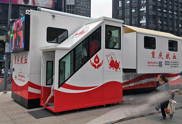 移動(dòng)獻(xiàn)血屋有什么特點(diǎn)呢?它是有輪子的,借助拖掛車牽引過來即可。商店應(yīng)急電源設(shè)備等,以保證機(jī)艙內(nèi)的空調(diào),血液存儲(chǔ)設(shè)備的正常運(yùn)行。還有就是,在獻(xiàn)血屋的前面,有一個(gè)應(yīng)急窗口,遇到一些問題需要取血或緊急情況時(shí)候,可以更加迅速地在這里處取出。這種更加寬敞的移動(dòng)獻(xiàn)血屋,能給獻(xiàn)血者提供更好的獻(xiàn)血服務(wù)。獻(xiàn)血屋有一個(gè)相對(duì)獨(dú)立的分區(qū),它也配備了更好的設(shè)施,無線網(wǎng)絡(luò),將提供一個(gè)更舒適的環(huán)境和更好的獻(xiàn)血者獻(xiàn)血經(jīng)歷。