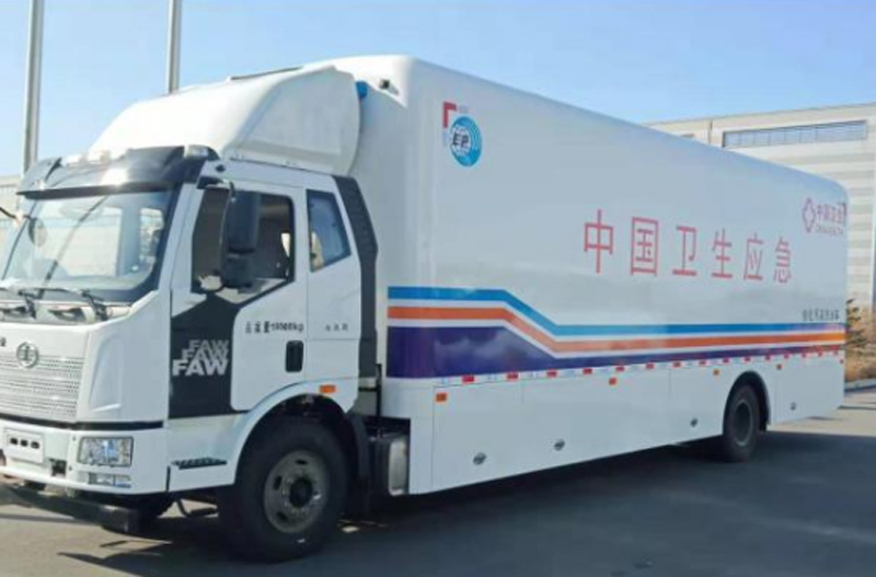 顯浩核化污染洗消車應(yīng)運而生,該款車具有多系統(tǒng)高度集成、全天候機動響應(yīng)、水電自我保障等突出優(yōu)點。該車輛滿載87噸,擴展后的工作空間長達15米,寬7米,高5米,能有效防止交叉污染,最大程度地保障傷病員和救援人員的生命健康安全。傳統(tǒng)國內(nèi)外洗消作業(yè)以公眾洗消帳篷為主,存在自身防污去污難、功能單一、智能化水平不高等問題。顯浩研制的多功能核化污染洗消車,提供了突擊處置、智能洗消等功能為一體的化學(xué)事故洗消處置技術(shù)裝備保障,可第一時間快速進入污染區(qū),完成應(yīng)急處置和人員救助。
