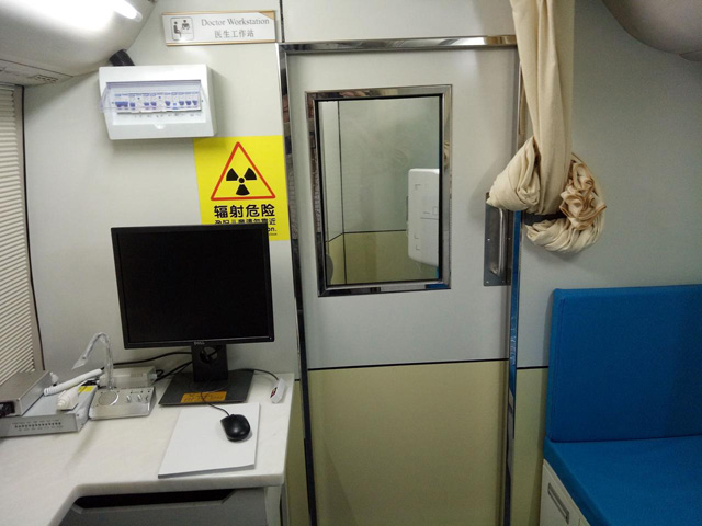 DR體檢車設(shè)備的布局防護(hù)查看周圍的劑量當(dāng)量率水平。車廂設(shè)備房固定屏蔽,四周的防御性不能低于1毫米的鉛當(dāng)量。檢查時候車廂機(jī)房的頂部底部需要防護(hù)避免輻射散射。