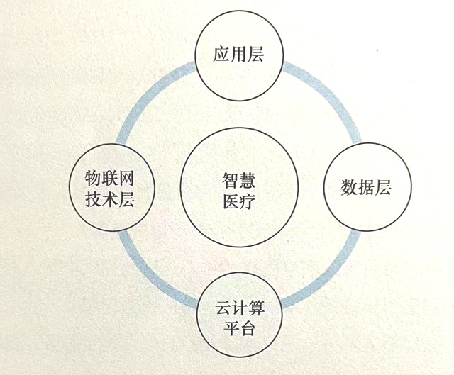智慧醫(yī)療體系,應(yīng)用層、數(shù)據(jù)層、云計(jì)算、物聯(lián)網(wǎng)技術(shù)等組成
