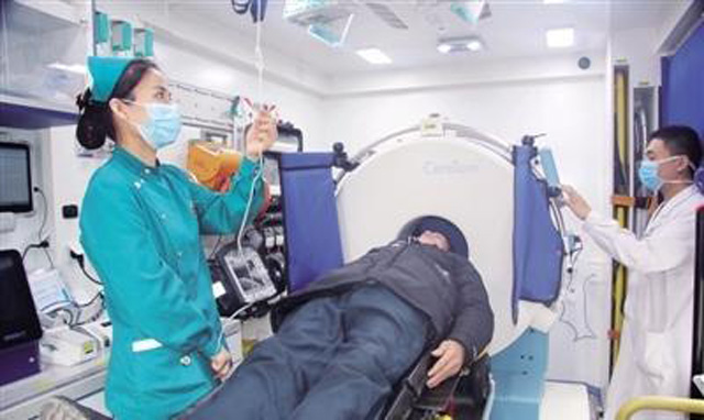 腦卒中中風是腦血管疾病,缺血性和出血性兩種,這樣腦部的缺氧和損傷威脅生命健康。腦卒中CT救護車可以快速識別腦部病變。上車就等于開始搶救。CT的診斷方便快捷,腦組織可以清晰的顯示,區(qū)分腦出血與腦梗死確定大小位置性質,急性卒中的首選方法。腦卒中的主要CT表現(xiàn),腦內邊界清楚、密度均勻高密度區(qū)。CT值為60-80Hu高密度血腫周圍低密度水腫帶圍繞。因血腫與腦水腫引起腦部結構組織的受壓、中線結構移位。破入腦室或蛛網(wǎng)膜下腔。CT檢查報告時,必須注意圖像是否清晰,有沒有偽影或干擾。