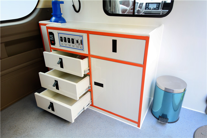 緊急救援車整車密封性良好。防噪音和粉塵達到高級客車標(biāo)準(zhǔn)。保溫層防蟲,阻燃,無毒,不吸水。易沖洗。封閉層無縫隙,耐磨,耐腐蝕,耐高低溫。緊急救援車醫(yī)療艙內(nèi)箱柜子邊緣有軟包裝。沒有尖銳物體。醫(yī)療設(shè)備和消耗物品要固定擺放固定設(shè)施。心電監(jiān)護設(shè)備,輸液裝置安裝便于醫(yī)護人員操作。藥品,耗材都放柜子抽屜內(nèi)。