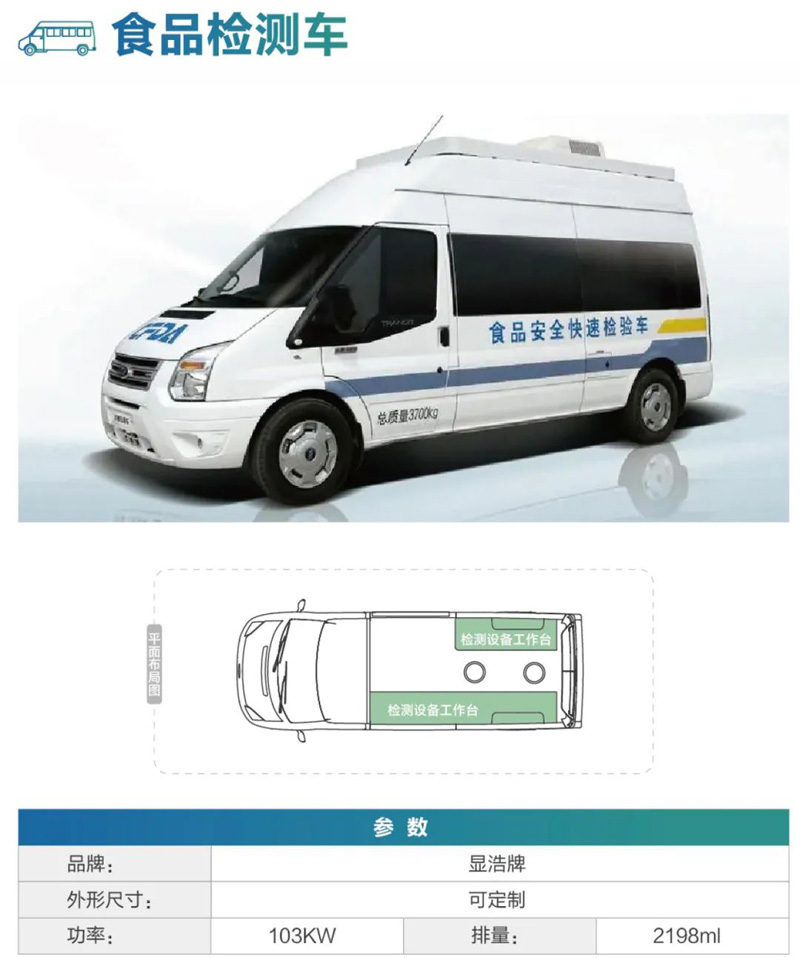 檢測(cè)車上,蔬菜中的農(nóng)藥殘留吊白塊、二氧化硫進(jìn)行快檢測(cè)定,車上配有農(nóng)藥殘留快速監(jiān)測(cè)儀、食品多功能監(jiān)測(cè)儀等7種儀器設(shè)備,可以對(duì)蔬菜、肉類等進(jìn)行17種檢測(cè),最快只要5分鐘。檢測(cè)車有移動(dòng)檢測(cè)的設(shè)備技術(shù),有效地檢測(cè)食品中農(nóng)藥殘留、獸藥殘留、海鮮的藥物殘留等有毒有害殘留的快速檢測(cè)問(wèn)題。檢測(cè)項(xiàng)目包括農(nóng)藥殘留、瘦肉精、亞硝酸鹽等?,F(xiàn)場(chǎng)抽樣檢測(cè)工作,現(xiàn)場(chǎng)提取樣本、現(xiàn)場(chǎng)檢測(cè)、現(xiàn)場(chǎng)出檢測(cè)結(jié)果,以保證合格的食用農(nóng)產(chǎn)品進(jìn)入餐桌。通過(guò)最快速的檢測(cè)方法對(duì)食用農(nóng)產(chǎn)品開展抽樣檢測(cè),食品安全快速檢測(cè),進(jìn)一步提高食品安全監(jiān)管效率。豬肉及豬肉制品、食用油、米面制品、食用農(nóng)產(chǎn)品、水產(chǎn)品等食品為重點(diǎn)品種。檢測(cè)車確保群眾吃得安全、吃得放心,食品進(jìn)行篩查,消除安全隱患。