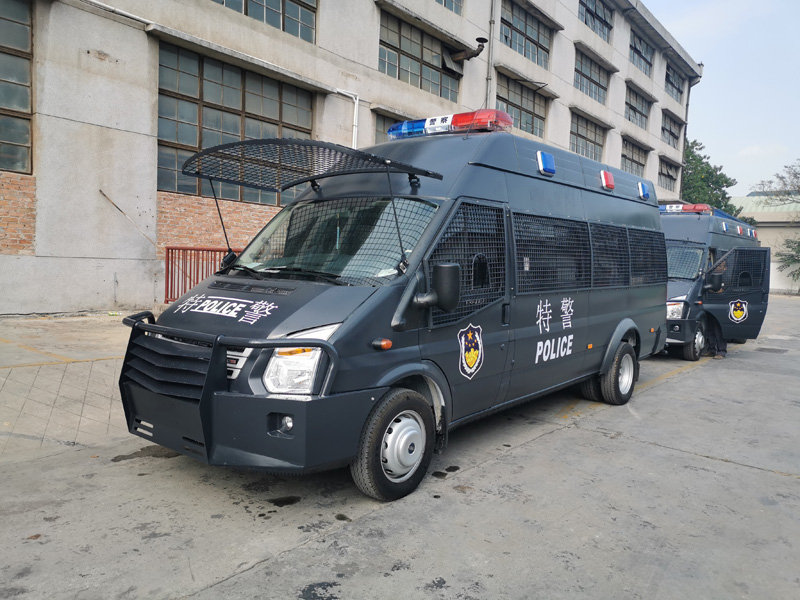 軍警車適用于特警、武警用于執(zhí)勤,追逃,反恐處理突然事件,也可以應(yīng)用于警戒等需求,集成性安全性舒適性一體的新型警用車輛。車身采用國(guó)際流行的楔形裝甲車的外型設(shè)計(jì)。軍警車外型威猛剛勁。車身采用進(jìn)口防彈材料制作并采用跳彈結(jié)構(gòu),防彈設(shè)計(jì)。軍警車座椅及內(nèi)飾材料采用真皮軟包;軍警車加裝空調(diào)、暖風(fēng)、換氣扇等,保證車內(nèi)環(huán)境的舒適性,射擊孔,炮塔等配置豐富,滿足各種處突需求。