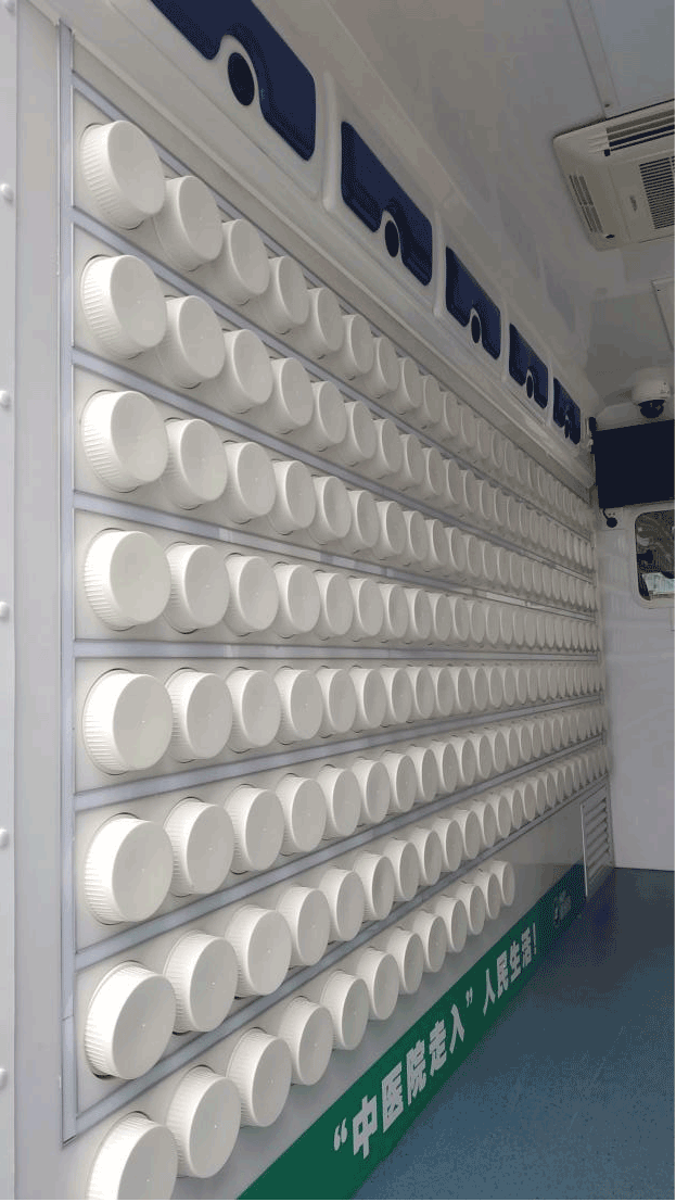 該款移動(dòng)中藥房車可搭載麻黃、細(xì)辛、生姜、葛根、菊花、丹皮、青蒿、生地等上百種中藥,車內(nèi)即可實(shí)現(xiàn)快速智能配藥。當(dāng)配藥醫(yī)護(hù)拿到藥方,找到所需要中藥,放入自動(dòng)發(fā)藥機(jī)中,數(shù)分鐘就可以完成藥物發(fā)放。